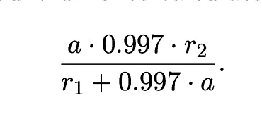 กลุ่มสภาพคล่องจะมีทุนสำรองโดยเฉพาะ โดยจะสมมุติว่าเป็น r1 และ r2 ซึ่งเป็นทุนสำรองสำหรับ ETH และ DAI สมมติว่าค่าธรรมเนียมหรือค่าใช้จ่ายในการทำธุรกรรมคือ 0.3% ของสินทรัพย์ที่ส่งเข้าไป ซึ่งก็คือ DAI ในกรณีของการเทรดของ David และ ‘a’ คือจำนวนสินทรัพย์ที่จะสวอปออกมา — จำนวนสินทรัพย์ที่ได้รับจากการสวอปจะถูกกำหนดด้วยสูตรด้านล่างนี้