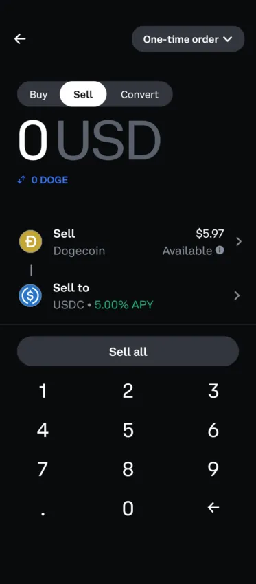 ต่อไป เราลองมาดูวิธีการขาย เหรียญ DOGE บน Coinbase อีกหนึ่งในกระดานเทรดชื่อดังกันดีกว่า