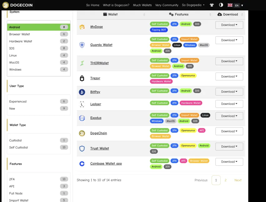 หากคุณต้องการซื้อ DOGE คุณจะต้องเลือกกระเป๋าเงินสำหรับจัดเก็บมันด้วย ระบบนิเวศ DOGE รองรับกระเป๋าเงินที่หลากหลาย รวมถึง MyDoge — กระเป๋าเงินที่มีการยืนยันตัวตนแบบ 2 ขั้นตอนในตัว, บอทการให้ทิป, และอื่นๆ อีกมากมาย หรือคุณสามารถเลือกใช้งานกระเป๋าเงิน เช่น Guarda, Trezor หรือ Ledger หรือกระเป๋าเงินอื่นๆ ที่รองรับได้