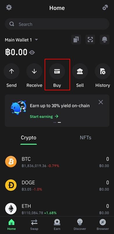 - เปิด Trust Wallet และเข้าไปที่หัวข้อ Buy