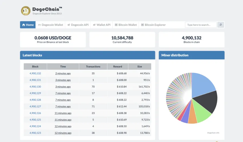 อีกหนึ่งองค์ประกอบของระบบนิเวศที่ไม่ค่อยมีใครรู้จักคือ DogeChain ซึ่งเปรียบเสมือน Blockchain Explorer สำหรับ Dogecoin เหมือนกับ Etherscan ของ Ethereum