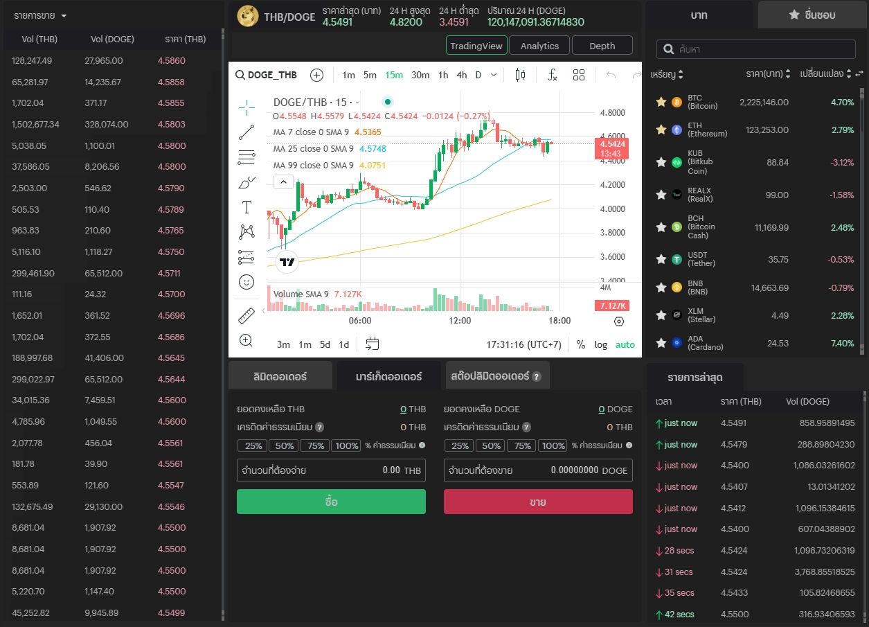 - หมายความว่า ราคา 1 DOGE ก็จะเท่ากับ 0.1276 USDT x 35.90 THB หรือเท่ากับ 4.58 บาทไทย นั่นเอง