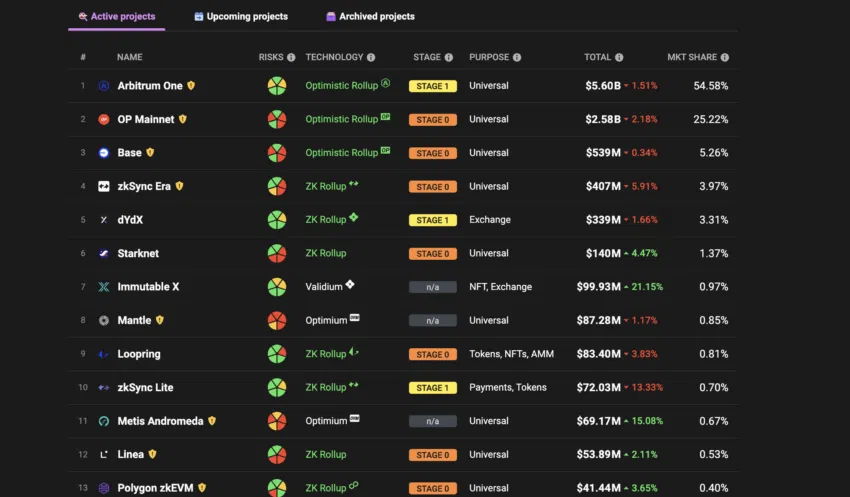 Arbitrum เป็นอีกหนึ่งโซลูชั่น Ethereum เลเยอร์ 2 ที่นำเอา Optimistic Rollups มาใช้งาน ซึ่งจะย้ายการทำธุรกรรมออกไปนอกเครือข่ายเช่นเดียวกับ Optimism ในช่วงหลายปีที่ผ่านมา Arbitrum ได้เปิดตัวการอัพเกรดใหม่ๆ เช่น Arbitrum Nitro และ Arbitrum One ซึ่งช่วยปรับปรุงความสามารถของการปรับขนาดของ Mainnet ให้ดียิ่งขึ้น และเมื่อไม่นานมานี้ Arbitrum ได้เปิดตัวโทเค็นของเครือข่าย — ARB — ซึ่งเป็นการเพิ่มประโยชน์การใช้งานอื่นๆ ให้กับมัน