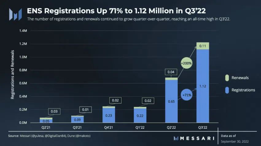 Ethereum Name Service (ENS) เป็นเวอร์ชั่นกระจายอำนาจของ Domain Name Service (DNS) สำหรับบล็อกเชน วัตถุประสงค์ของ ENS คือการทำให้ที่อยู่บล็อกเชน (โดยเฉพาะบน Ethereum) สามารถเข้าใจและอ่านได้ง่าย เนื่องจากโดเมน ENS จะมีเอกลักษณ์เฉพาะตัว มันจึงมีบทบาทสำคัญในการส่งเสริมระบบนิเวศ NFT ของ Ethereum และชื่อ ENS มีบทบาทสำคัญที่ช่วยรักษาระบบนิเวศ NFT เอาไว้ให้ไม่ตกต่ำลงในปี 2022