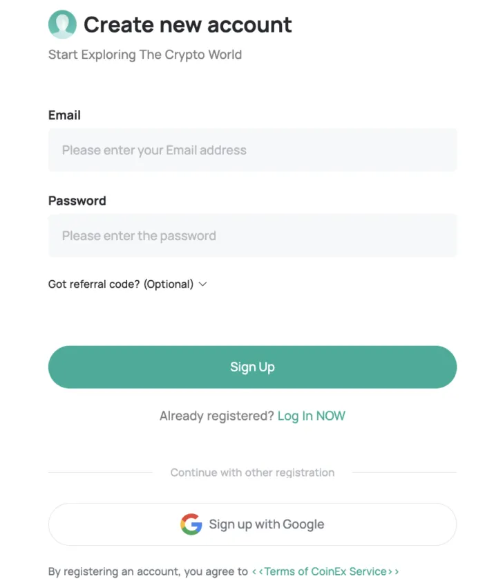 1. หากคุณยังไม่มีบัญชี โปรดสมัครหนึ่งบัญชีในหน้าอย่างเป็นทางการ CoinEx