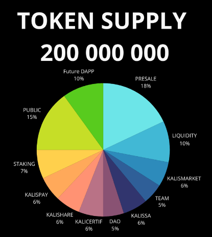 อุปทานรวมของ KALIS อยู่ที่ 200 ล้านเหรียญ และอุปทานที่จำกัดนี้ทำให้เหรียญแต่ละเหรียญมีค่า โดยมีการวางแผนว่า 75% ของอุปทานทั้งหมดจะถูกขายในช่วง Distribution Phase และการจัดสรรอุปทานทั้งหมดแบ่งออกเป็นดังนี้: