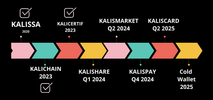ตั้งแต่ไตรมาสที่ 2 ของปี 2024 ถึงปี 2025 แผนงานของ Kalichain ระบุถึงแผนงานที่สำคัญหลายประการ: