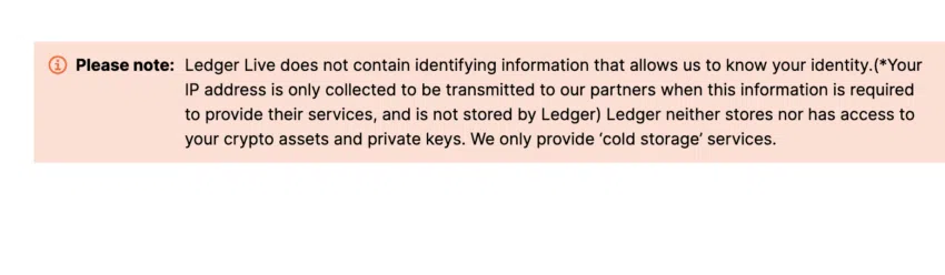 นโยบายความเป็นส่วนตัวของผู้ผลิต Hardware Wallet เป็นสิ่งที่อาจจะทำให้พวกเขารุ่งเรือง หรือไม่ก็ล่มจมได้เลยทีเดียว ปัจจุบัน Ledger จะมีการรวบรวมข้อมูลส่วนบุคคลต่างๆ ผ่านเว็บไซต์, แอปพลิเคชั่น Ledger Live, และการโต้ตอบกับ 3rd Party รายอื่นๆ ผ่านแอป Ledger Live