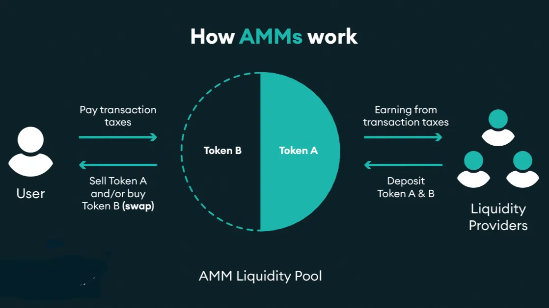 ตัวช่วยดูแลสภาพคล่องแบบอัตโนมัติ (AMM) คือประเภทของโปรโตคอลเว็บเทรดแบบกระจายศูนย์ที่ใช้สูตรทางคณิตศาสตร์ในการกำหนดราคาสินทรัพย์ โดยพื้นฐานแล้ว สินทรัพย์จะถูกกำหนดราคาโดยใช้อัลกอริธึมการกำหนดราคา แทนที่จะใช้คำสั่งจองแบบเว็บเทรดแบบดั้งเดิม