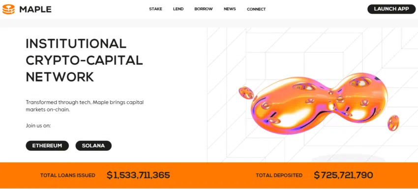 Maple Finance เป็นโครงการแบบ Multi-chain ที่ทำงานบนเครือข่าย Ethereum และ Solana ได้รับความสนใจอย่างมากนับตั้งแต่เปิดตัวในเดือนพฤษภาคม 2021 จากข้อมูลอย่างเป็นทางการ เงินกู้มากกว่า 1 พันล้านดอลลาร์นั้นเป็นหลักประกันในช่วง 10 เดือนแรกของโครงการ
