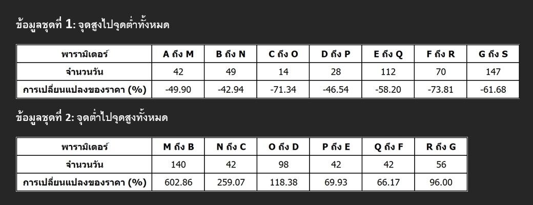 ค่าเฉลี่ยจากจุดต่ำไปสูง: 202.06% และ 70 วัน