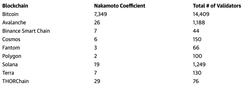 ค่า Nakamoto Coefficient ของ Blockchain ต่างๆ