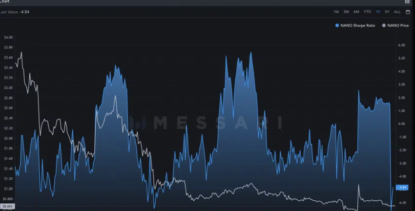 เมื่อดู Nano (XNO) จากมุมมองของการลงทุน สิ่งที่สำคัญคือต้องดูที่ Sharpe Ratio อัตราส่วนนี้จะวัดผลตอบแทนต่อความเสี่ยงของ Nano เมื่อเวลาผ่านไป พูดง่ายๆ ยิ่งเยอะก็ยิ่งดี!