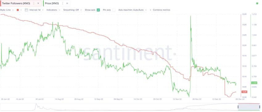 สุดท้าย ผู้ติดตาม Twitter ของ Nano ลดลงอย่างมากตั้งแต่เดือนมิถุนายน 2022 ราคาก็ตอบสนองในทำนองเดียวกัน