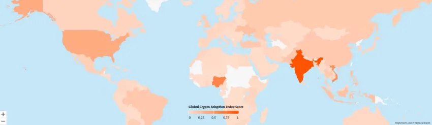เมื่อดูที่ Crypto Adoption Index ล่าสุดของ Chainalysis ซึ่งนำเสนอภาพรวมโดยละเอียดเกี่ยวกับแนวโน้มของการนำเอาสกุลเงินดิจิทัลไปใช้งานทั่วโลก เราก็จะได้เห็นภาพรวมที่ชัดเจนยิ่งขึ้น