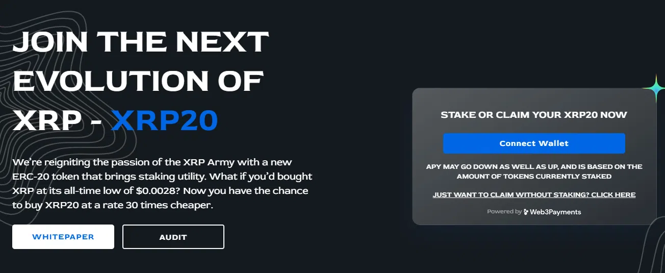 XRP20 จะติดตามเทรนด์ล่าสุดในตลาดสกุลเงินคริปโต ซึ่งจะเป็นการมอบโอกาสให้กับผู้ใช้งานได้ลงทุนในตลาดคริปโตที่ประสบความสำเร็จอีกครั้ง ข้อดีของ XRP20 คือ คุณสามารถซื้อโทเค็นด้วยเงินเพียงเล็กน้อย และ Stake มันเพื่อสร้าง Passive Income ได้