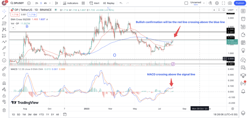 หากต้องการตรวจสอบว่าราคาจะเพิ่มสูงขึ้นหรือไม่ ให้ลองดูว่าราคาอยู่สูงกว่าเส้น MA ที่กำหนดไว้ (เช่น เส้น MA 50 วัน) หรือไม่ ถ้าใช่ นั่นหมายความว่าตลาดอาจจะอยู่ในสภาวะขาขึ้น และเพื่อยืนยันสิ่งนี้ ให้ดูว่า RSI อยู่ในช่วง Oversold หรือต่ำกว่า 40 หรือไม่?