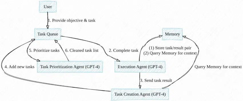 โดยพื้นฐานแล้ว BabyAGI เป็นแบบจำลองทางภาษาที่เชื่อมต่อกับลิสต์ของงาน โดยจะจัดเก็บงานที่เสร็จสมบูรณ์ไว้ในฐานข้อมูล ทำหน้าที่เป็น “หน่วยความจำ” ของแบบจำลองสำหรับ “บริบท” เมื่อมีการกำหนดและดำเนินการงานใหม่ ถึงแม้ว่าสคริปต์พื้นฐานจะไม่มีความสามารถในการศึกษาข้อมูลจากอินเทอร์เน็ตหรือความสามารถในการเรียกใช้โค้ดอัตโนมัติ แต่ความสามารถเหล่านี้ก็มีอยู่ในเวอร์ชั่นย่อยที่แยกออกมา