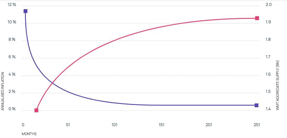 ผู้ดำเนินการโหนดจะได้รับค่าธรรมเนียมการทำธุรกรรมในสกุลเงิน $WMT ซึ่งพวกเขาจะแบ่งปันกับผู้ที่ stake โทเค็นในโหนดของตน สำหรับผลตอบแทนจากอัตราเงินเฟ้อ บริษัทจะเก็บ 29% ของอุปทานโทเค็นทั้งหมดไว้สำหรับผู้ที่ stake และผู้ดำเนินการโหนด
