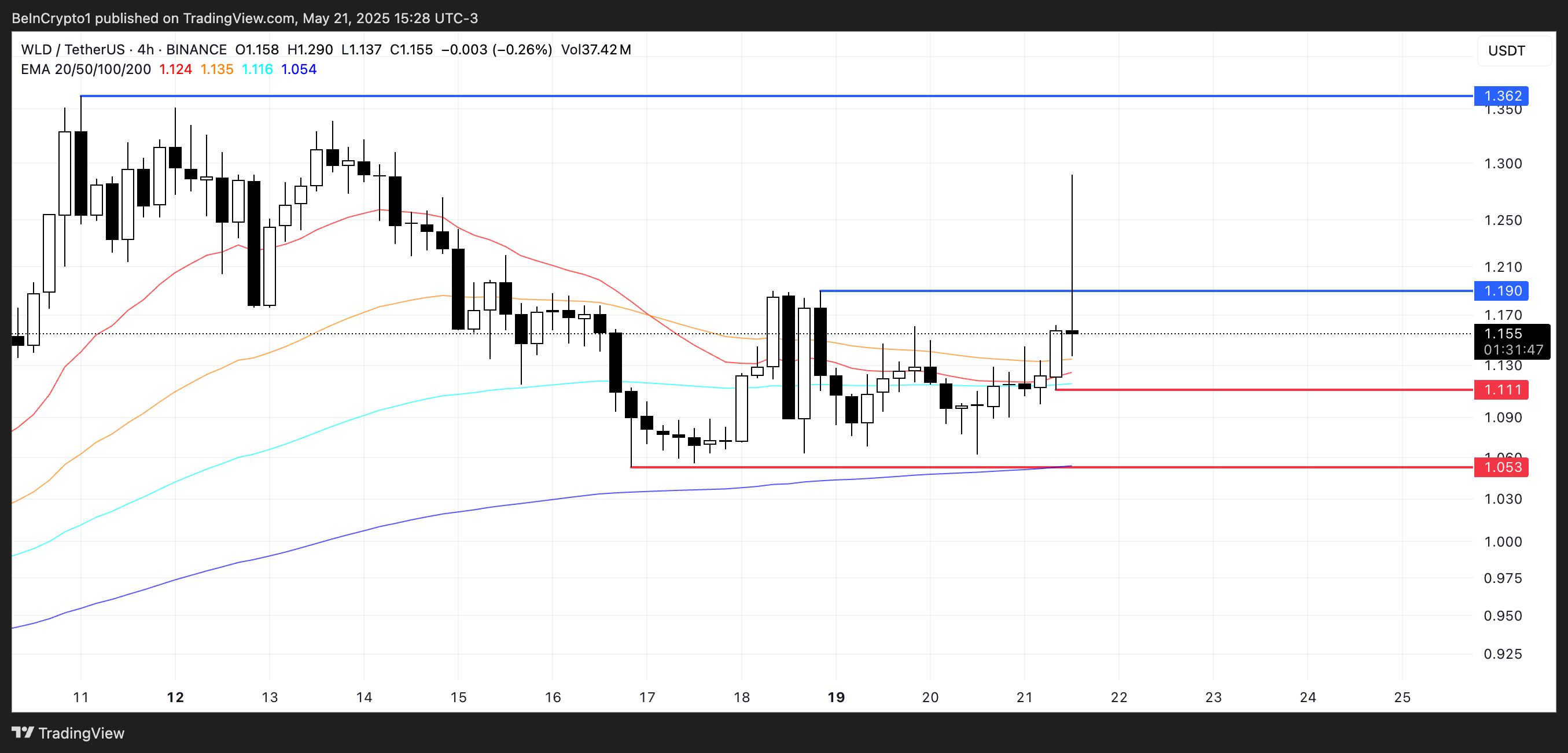 หากโมเมนตัมยังคงอยู่ WLD อาจไต่ขึ้นไปที่ 1.19 USD และหากแนวต้านนั้นถูกทำลาย อาจขยายกำไรไปถึง 1.36 USD อย่างไรก็ตาม หากโทเคนไม่สามารถยืนเหนือ 1.11 USD ได้ อาจลดลงไปที่ 1.05 USD และอาจต่ำกว่า 1 USD หากแรงกดดันจากตลาดหมีเพิ่มขึ้น
