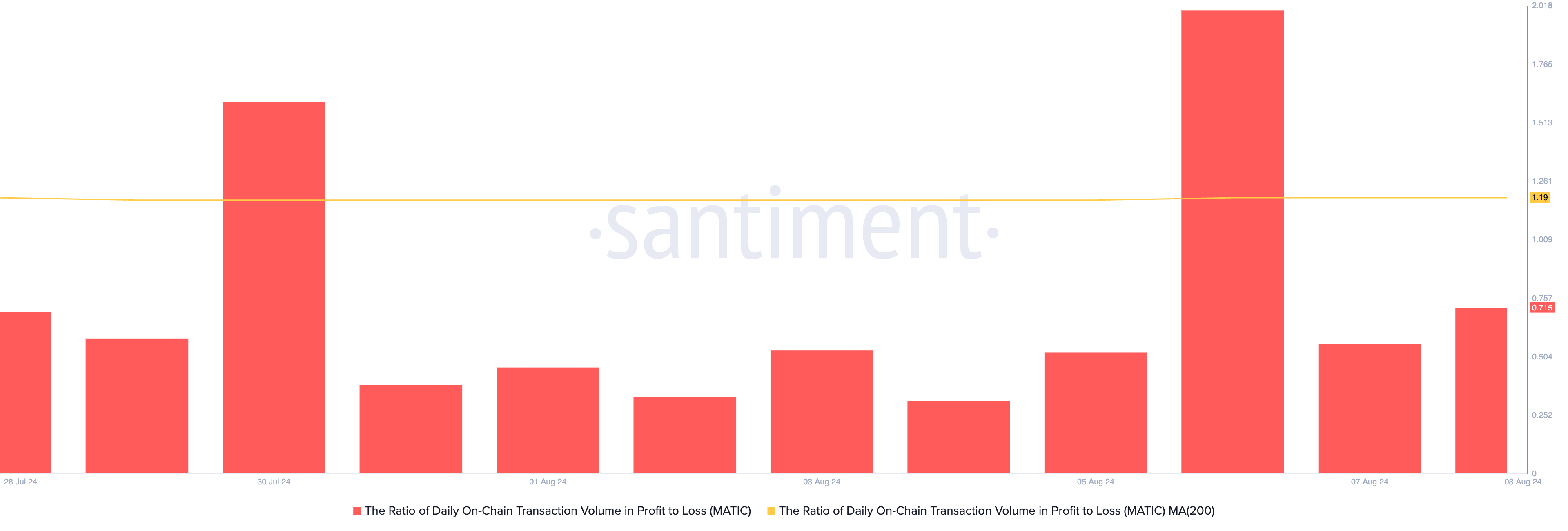 ต่อ Santiment ค่าของเมตริกคือ 1.19 ซึ่งบ่งชี้ว่าสําหรับทุกธุรกรรมที่ส่งคืนการขาดทุนในช่วง 200 วันซื้อขายที่ผ่านมา 1.19 ธุรกรรมจบลงด้วยกําไร