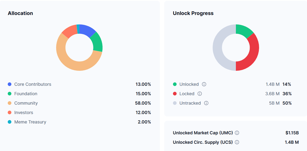 อีกปัจจัยหนึ่งที่ส่งผลต่อความเชื่อมั่นของนักลงทุนคืออุปทานของโทเคน มีเพียง 14% ของอุปทานทั้งหมดของ MemeCore ที่ถูกปล่อยเข้าสู่การหมุนเวียน ซึ่งหมายความว่ากระบวนการปลดล็อกยังคงดำเนินต่อไป