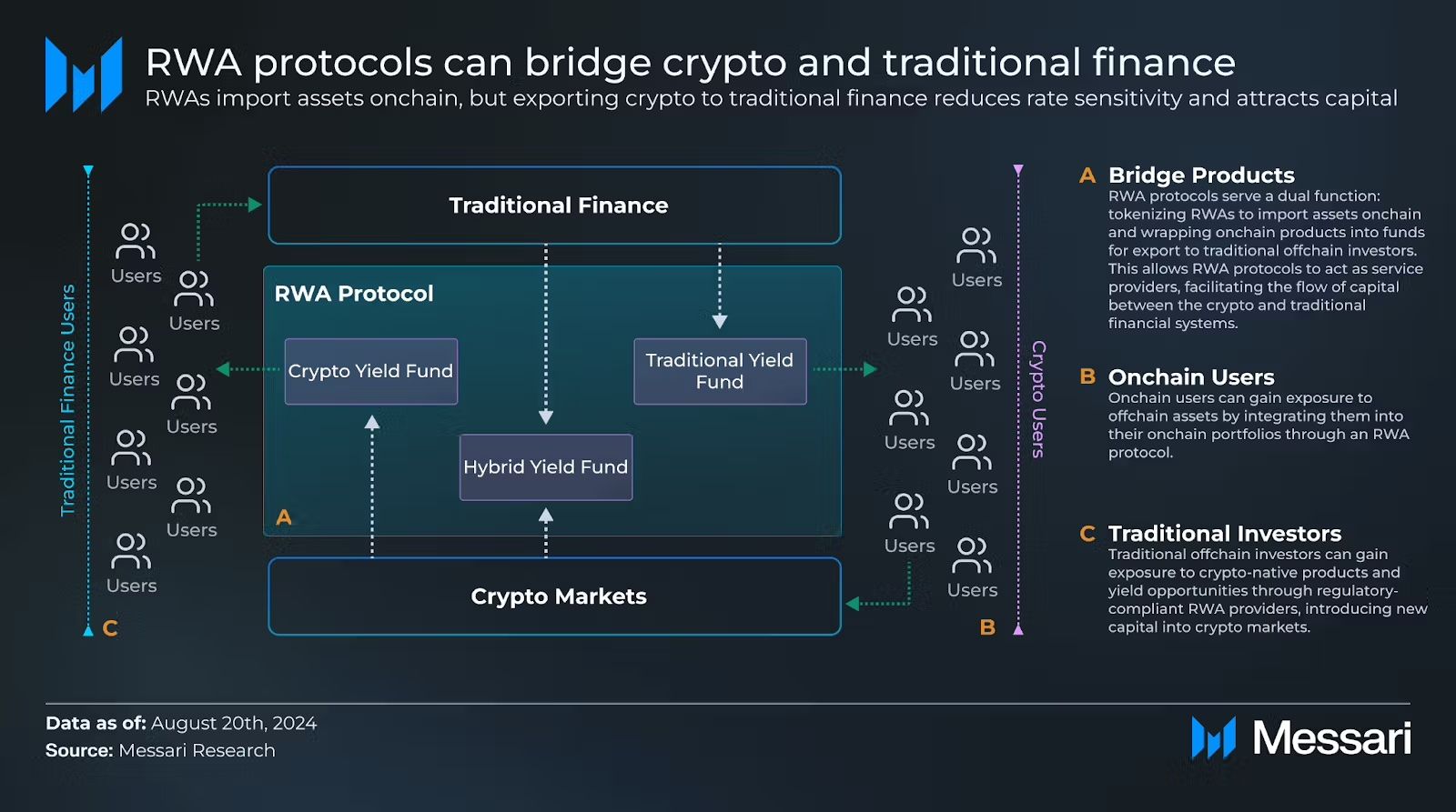 ในขณะเดียวกัน RWAs ที่ถูก Token ก็พร้อมที่จะเปลี่ยนแปลงตลาดโดยการนำสินทรัพย์ดั้งเดิม เช่น อสังหาริมทรัพย์ พันธบัตร และหุ้น เข้าสู่เครือข่าย Blockchain โครงการเช่น Centrifuge และ Ondo Finance ได้กลายเป็นผู้เล่นหลักในการเชื่อมโยงการเงินดั้งเดิมกับเทคโนโลยี Blockchain
