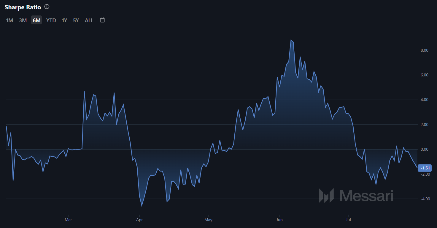 Sponsoredนอกจากนี้ Sharpe Ratio ที่ -1.51 ซึ่งเป็นตัวชี้วัดผลตอบแทนที่ปรับความเสี่ยงได้กลับเข้าสู่แดนลบ การลดลงนี้บ่งชี้ว่าผลตอบแทนของ Monero ไม่ได้ชดเชยความเสี่ยงที่เกี่ยวข้องให้กับนักลงทุนอย่างเพียงพออีกต่อไป