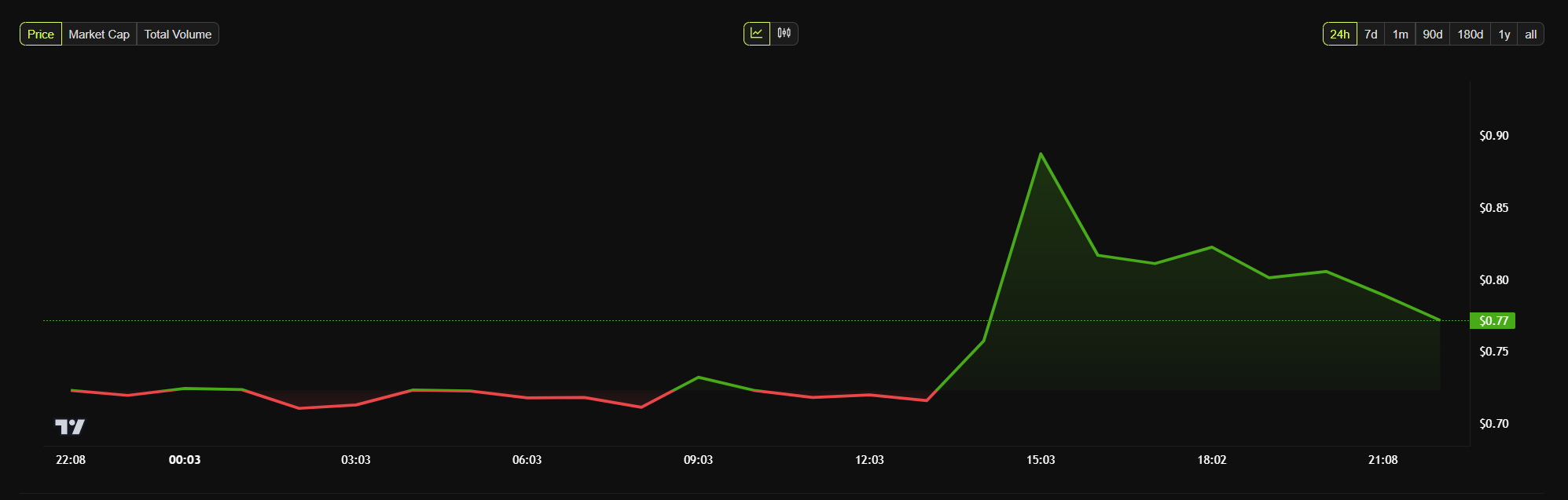 โทเค็น เพิ่มขึ้นเกือบ 100% หลังจากเปิดตัวบน Binance ในเดือนธันวาคม 2024 ภายในหนึ่งสัปดาห์หลังจากเปิดตัว มันถึงราคาสูงสุดที่ 1.45 USD และมีมูลค่าตลาด 2.7 พันล้าน USD แต่ก็มีการปรับตัวลงติดต่อกัน