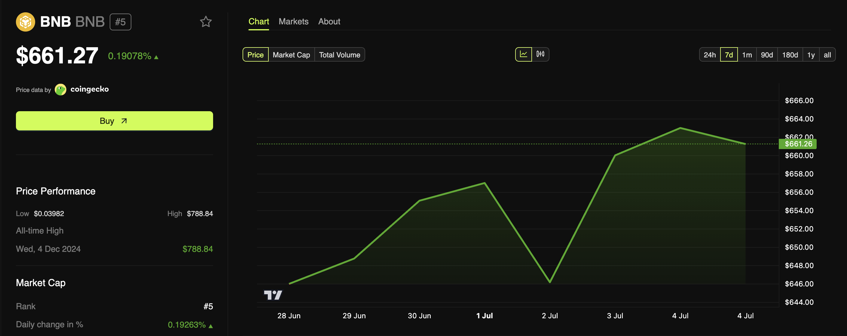 ข้อมูลจาก BeInCrypto เปิดเผยว่า altcoin เพิ่มขึ้น 0.19% ในวันก่อนหน้าเพื่อซื้อขายที่ 661.2 USD ในสัปดาห์ที่ผ่านมา ราคาขึ้น 2.6%