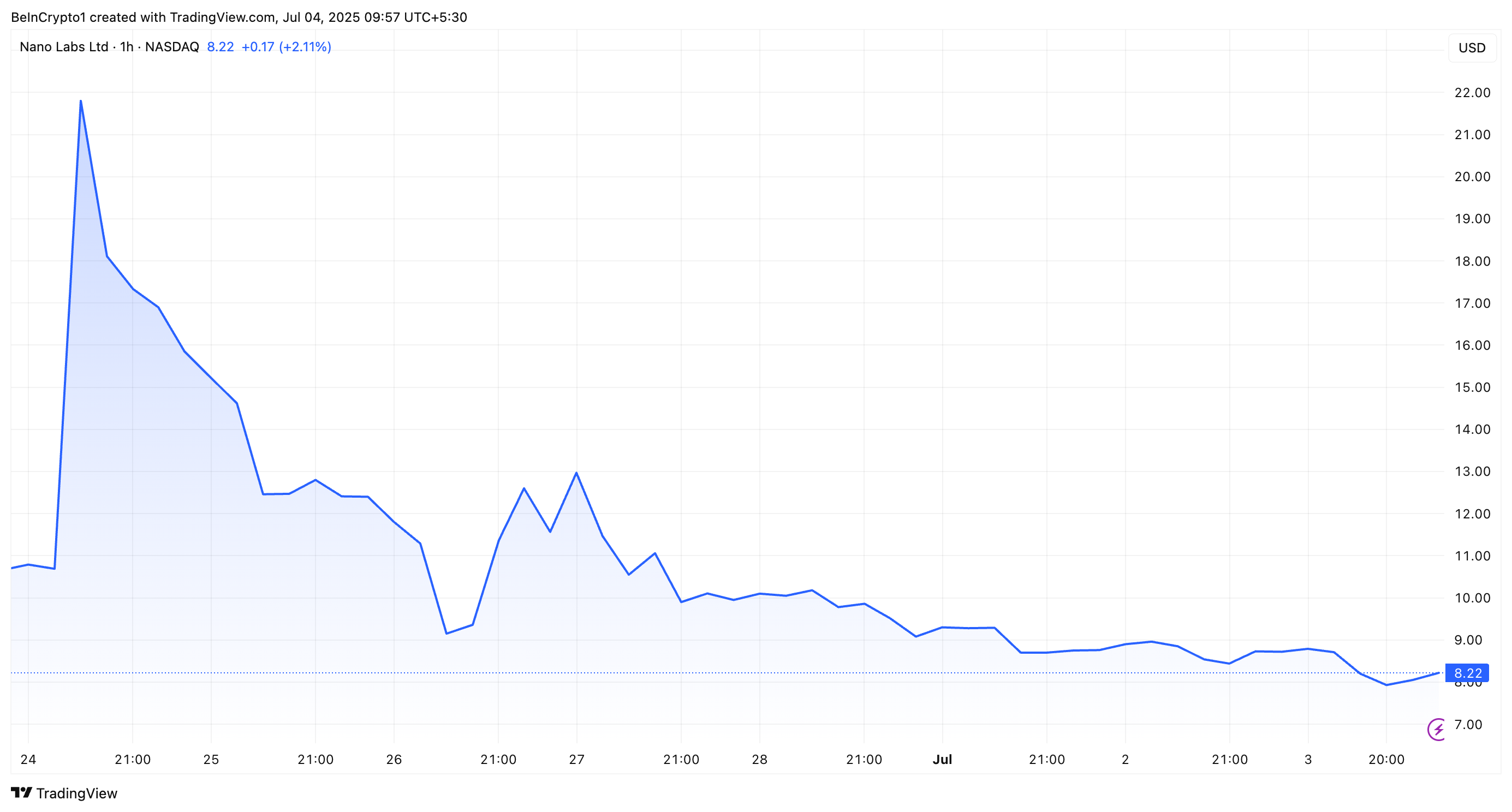 อย่างไรก็ตาม การซื้อ BNB ของ Nano Labs ไม่ได้ช่วยเพิ่มราคาหุ้น ซึ่งลดลงตั้งแต่สัปดาห์ที่แล้ว แม้ว่าการประกาศเงินสำรอง BNB จะทำให้มูลค่าเพิ่มขึ้นกว่า 100% ในวันที่ 24 มิถุนายน แต่ NA ได้สูญเสียกำไรทั้งหมดไปแล้ว