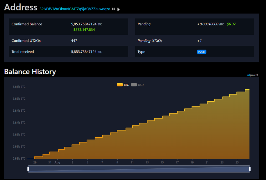 โดยเฉพาะอย่างยิ่ง เอลซัลวาดอร์เป็นหนึ่งในผู้ถือ Bitcoin รายใหญ่ที่สุดในโลก ข้อมูล mempool ของ Bitcoin Office แสดงให้เห็นว่า ณ วันที่ 26 สิงหาคม เอลซัลวาดอร์ถือครองประมาณ 5,853 BTC ที่ราคาตลาดปัจจุบันของ Bitcoin การถือครองนี้มีมูลค่า 373.48 ล้านดอลลาร์