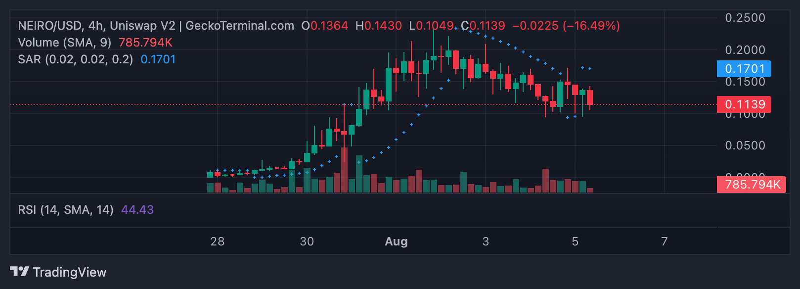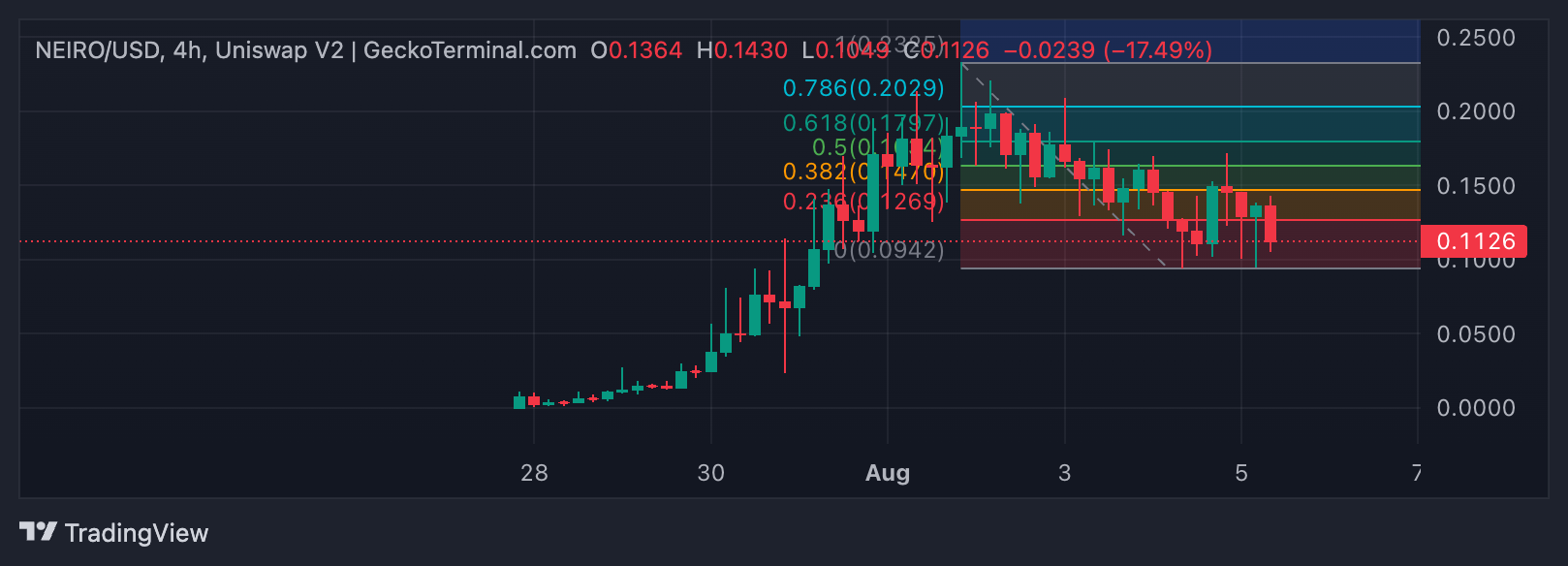 การเคลื่อนไหวนี้ได้สร้างแรงกดดันอย่างมากต่อมูลค่าของเหรียญมีม เนื่องจากผู้ค้าเริ่มลดการถือครองของตน การอ่านจากการเคลื่อนไหวของราคาของ NEIRO ในกราฟสี่ชั่วโมงยืนยันแรงขายที่เพิ่มขึ้นในหมู่ผู้เข้าร่วมตลาด