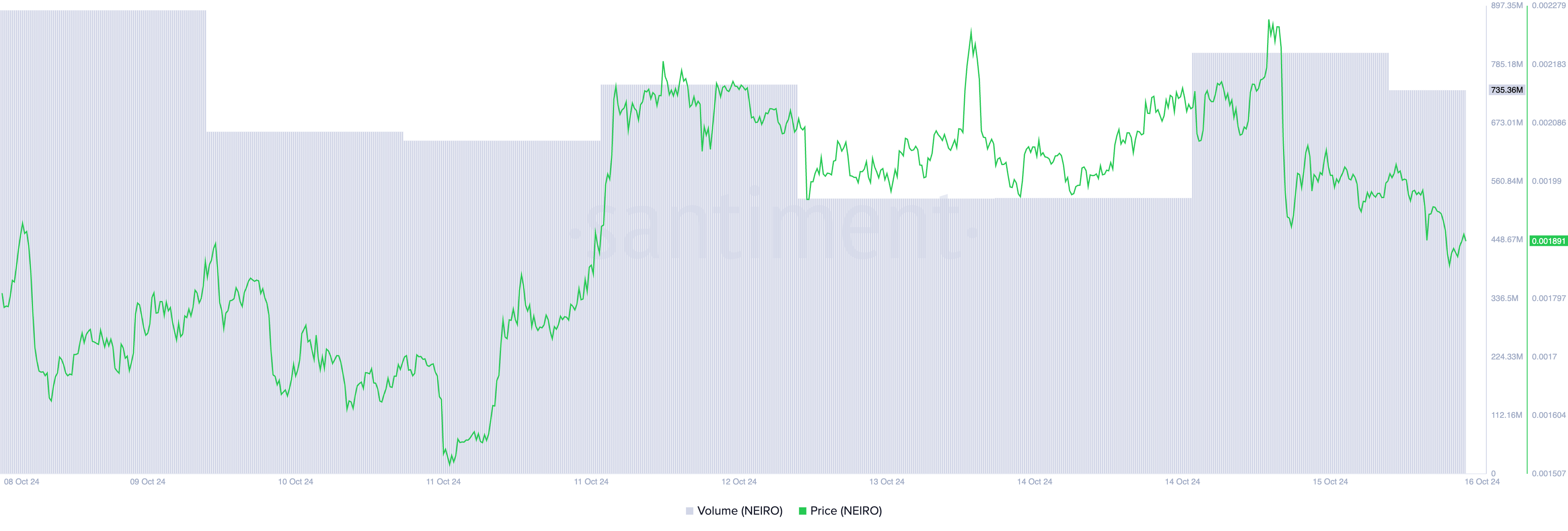 ปริมาณการซื้อขายที่เพิ่มขึ้นได้เกิดขึ้นพร้อมกับ การลดลงของ NEIRO สองหลักใน 24 ชั่วโมงที่ผ่านมา ในช่วงเวลานี้มีมูลค่ารวม 685 ล้าน USD ซึ่งเพิ่มขึ้น 12%.