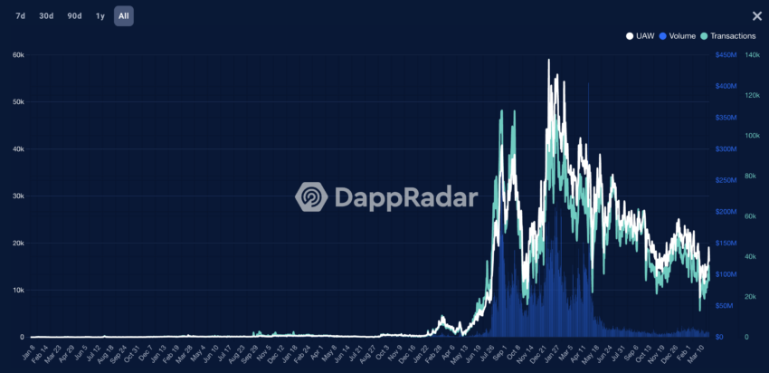 กระแสความคึกคักในตลาด NFT ลดลงอย่างเห็นได้ชัด หลังจากที่มูลค่าตลาดพุ่งถึง 20 ล้านดอลลาร์สหรัฐฯ ในปี 2020 มาเป็น 2.9 พันล้านดอลลาร์สหรัฐฯ ในปี 2021 จากนั้น พบว่าราคา NFT ที่เกี่ยวข้องกับงานศิลปะลดลงราว 50% ในปี 2022