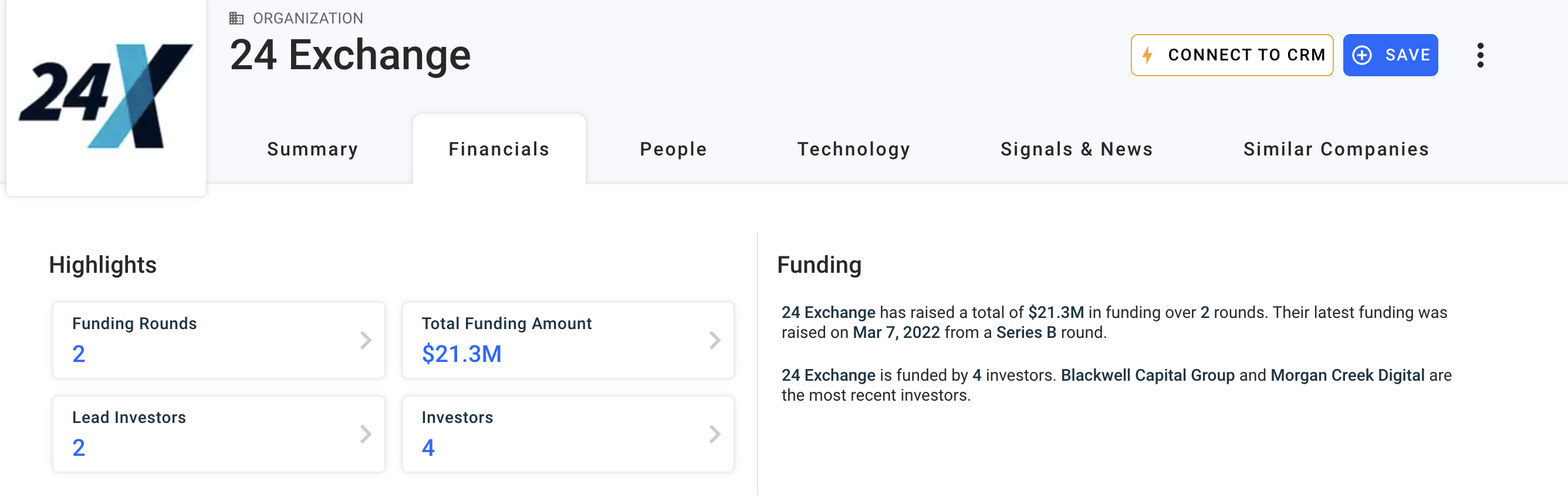 การเปลี่ยนแปลงเชิงกลยุทธ์นี้ได้รับการสนับสนุนจากการลงทุนจํานวนมาก รวมถึงการระดมทุนมากกว่า 14 ล้านดอลลาร์ในปี 2021 ในรอบการระดมทุนที่นําโดย Point72 Ventures ของ Steve Cohen จากนั้นในเดือนมีนาคม 2022 24X ระดมทุนได้ 7 ล้านดอลลาร์ผ่านรอบ Series B ที่นําโดย Morgan Creek Digital