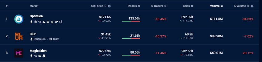 อย่างไรก็ตาม การดำเนินการของ SEC ต่อแพลตฟอร์มนี้มีความสำคัญอย่างยิ่ง เนื่องจาก ตำแหน่งผู้นำของ OpenSea ในตลาด NFT ข้อมูลจาก DappRadar แสดงให้เห็นว่าในช่วง 30 วันที่ผ่านมา OpenSea สร้างยอดขายมากกว่า 111 ล้าน USD ตัวเลขนี้เกินกว่าคู่แข่งที่ใกล้ที่สุดคือ Blur ซึ่งมียอดขาย 99.98 ล้านดอลลาร์