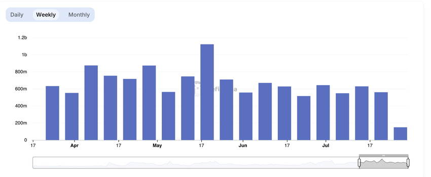 เมื่อพุ่งสูงขึ้น จะส่งสัญญาณถึงกิจกรรมการซื้อขายที่เพิ่มขึ้นและความสนใจในเครือข่าย ในทางกลับกัน ปริมาณการซื้อขายที่ต่ําใน DEX ของเครือข่ายสะท้อนให้เห็นถึงความเชื่อมั่นที่เป็นขาลงหรือระมัดระวังในหมู่นักลงทุนและผู้ใช้เครือข่าย
