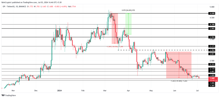 การฟื้นตัวที่คาดว่าจะเกิดขึ้น อาจส่ง OP ไปที่ 2.00 ดอลลาร์ หรือสูงกว่า. อย่างไรก็ตาม เพื่อฟื้นตัวจากการสูญเสีย 41% ที่บันทึกไว้ในไม่กี่สัปดาห์ที่ผ่านมา altcoin นี้จะต้องกู้คืน 2.82 ดอลลาร์ เป็นการสนับสนุน