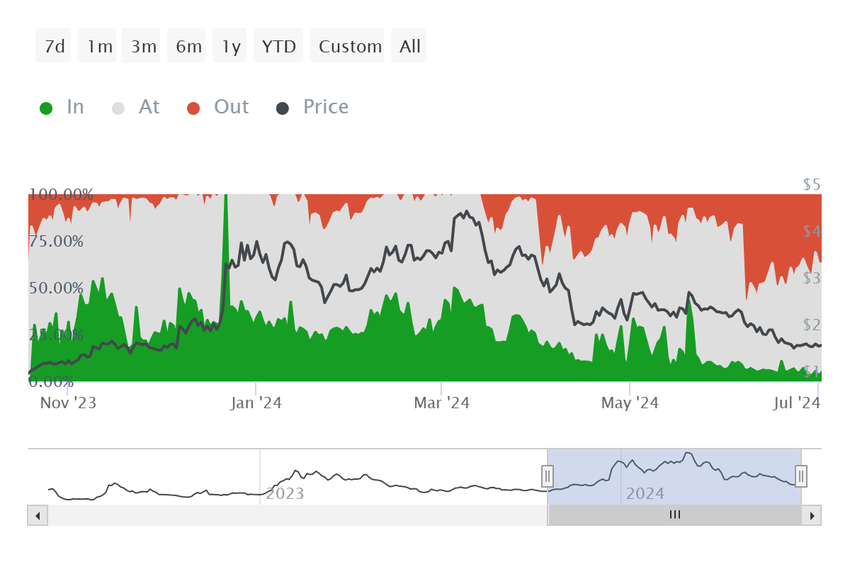 ราคาของ Optimism อาจมองหาการฟื้นตัว เนื่องจากนักลงทุนเปลี่ยนท่าทีจากการขายไปเป็นการสะสม สัญญาณนี้สามารถเห็นได้จากการสังเกตที่อยู่ที่ใช้งานอยู่ตามกำไร