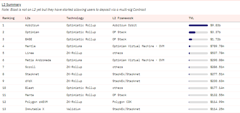 จากแดชบอร์ด L2 บน Dune Analytics TVL แบบบริดจ์ทั้งหมดในเครือข่าย L2 อยู่ที่ 18.19 พันล้านดอลลาร์ ตัวเลขนี้เน้นย้ําถึงการยอมรับและการใช้โซลูชัน L2 ที่เพิ่มขึ้นโดยผู้ใช้และแอปพลิเคชันแบบกระจายอํานาจ (dApps) ซึ่งแสดงให้เห็นถึงความสําคัญในการเสริมสร้างความสามารถในการปรับขนาดและประสิทธิภาพของบล็อกเชน