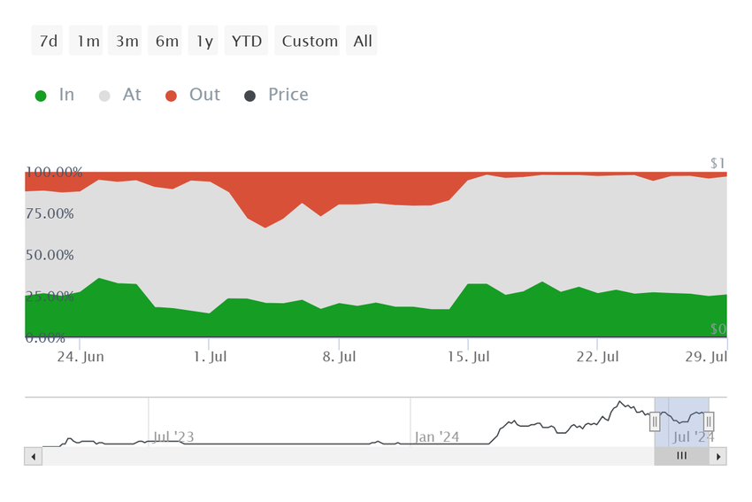 ปัจจุบันพวกเขาครอง 20% ของอุปทานหมุนเวียนทั้งหมดของ PEPE ซึ่งเพิ่มขึ้นหลังจากการพุ่งขึ้นในช่วงกลางเดือนกรกฎาคมจาก 14% แม้ว่าสถานะของพวกเขาจะไม่สูงจนน่าเป็นห่วง แต่พวกเขาอาจมองหาการขาย ซึ่งยังคงอาจทําให้เกิดภาวะขาลง