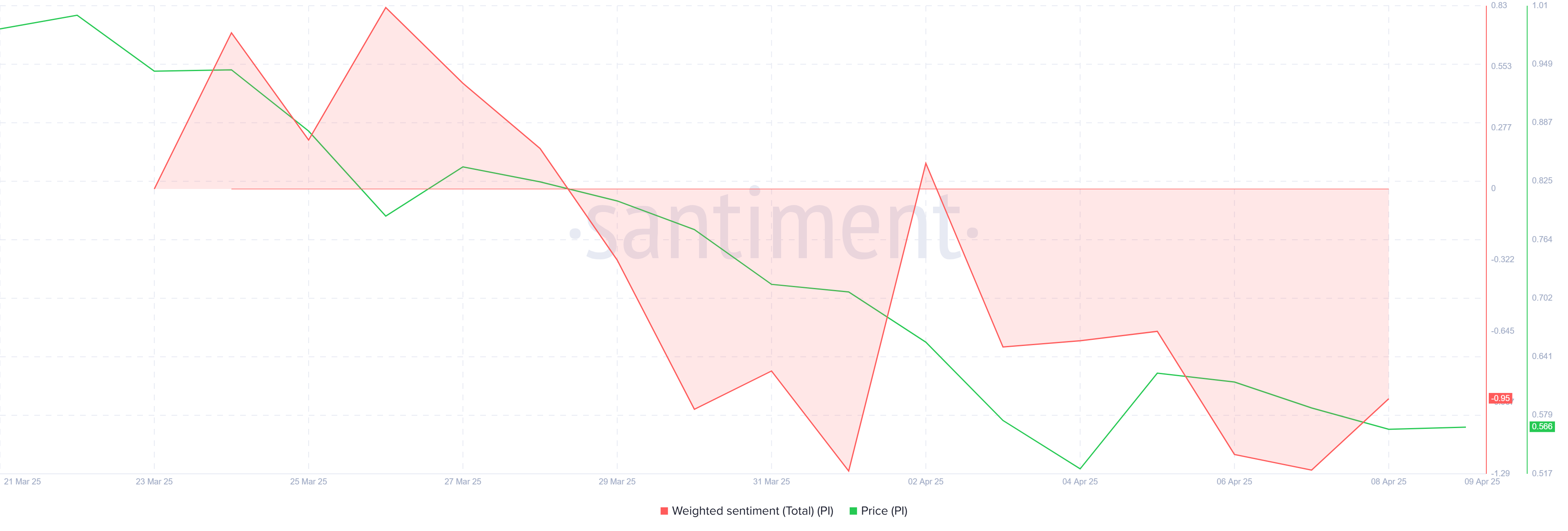 ปัจจุบัน ความรู้สึกของนักลงทุนเกี่ยวกับ Pi Network เป็นไปในทางลบอย่างมาก การเคลื่อนไหวของราคาล่าสุด ประกอบกับสภาวะตลาดที่แย่ลง ได้ทำให้หลายคนเชื่อว่า Pi Network ไม่น่าจะเห็นการขึ้นราคาครั้งใหญ่ในเร็วๆ นี้ การรับรู้นี้ทำให้ความเชื่อมั่นของนักลงทุนลดลง ซึ่งยิ่งส่งผลให้ความรู้สึกโดยรวมเป็นไปในทางลบมากขึ้น