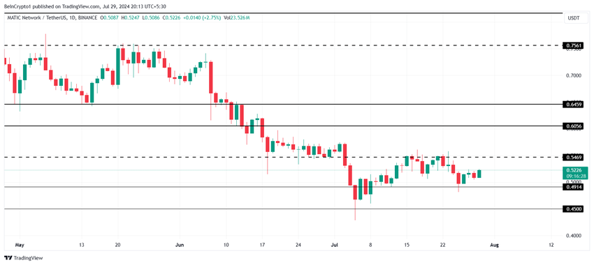 ราคา MATIC ที่ 0.522 ดอลลาร์ ยังคงเคลื่อนไหวระหว่าง 0.546 ดอลลาร์ถึง 0.491 ดอลลาร์ ช่วงนี้ทําให้ altcoin รวมเข้าด้วยกันมานานกว่าสามสัปดาห์แล้ว ซึ่งอาจดําเนินต่อไปได้