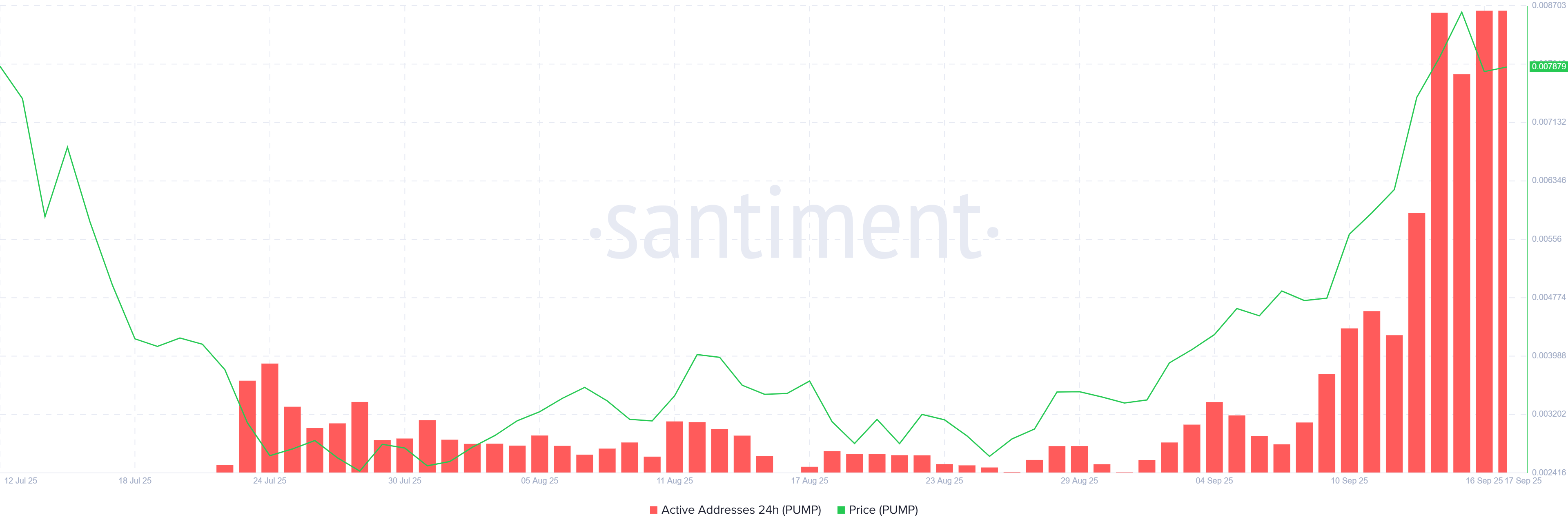 ความแตกต่างระหว่างกิจกรรมที่เพิ่มขึ้นและการเติบโตที่อ่อนแอลงนี้ทำให้เกิดความกังวลเกี่ยวกับความยั่งยืน แม้ว่าผู้ถือครองที่มีอยู่จะยังคงใช้งานอยู่ แต่การขาดการยอมรับใหม่อาจจำกัดการไหลเข้าของเงินทุน ซึ่งอาจทำให้ PUMP เผชิญกับความผันผวนและความไม่เสถียรที่รุนแรงขึ้นในช่วงต่อไป