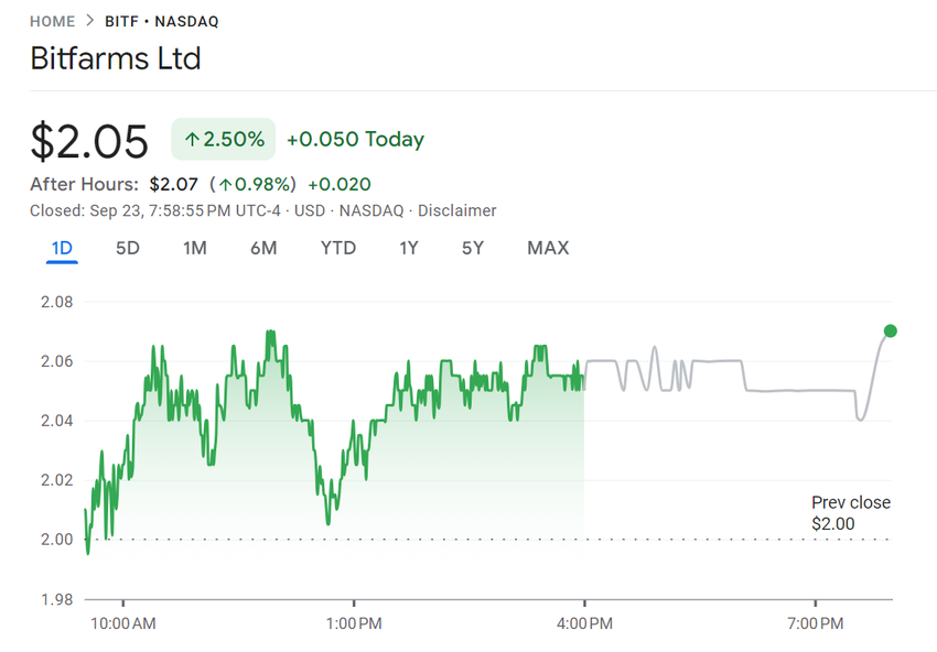 ณ วันที่ตกลง หุ้นของ Bitfarms BITF มีการซื้อขายที่ราคา 2.05 ดอลลาร์ ซึ่งสะท้อนถึงการเพิ่มขึ้น 2.05% อย่างไรก็ตาม ตั้งแต่ต้นปีจนถึงปัจจุบัน หุ้นดังกล่าวได้รับการเห็นการลดลง 27.82%