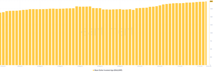 พูดง่ายๆ ก็คือ MDIA ติดตามอายุเฉลี่ยของสินทรัพย์ที่ยังคงอยู่ในกระเป๋าเงินเดิมเป็นระยะเวลาหนึ่ง ในขณะที่เขียนนี้ MDIA 90 วันของ Ripple ยังคงไต่ระดับอย่างต่อเนื่อง