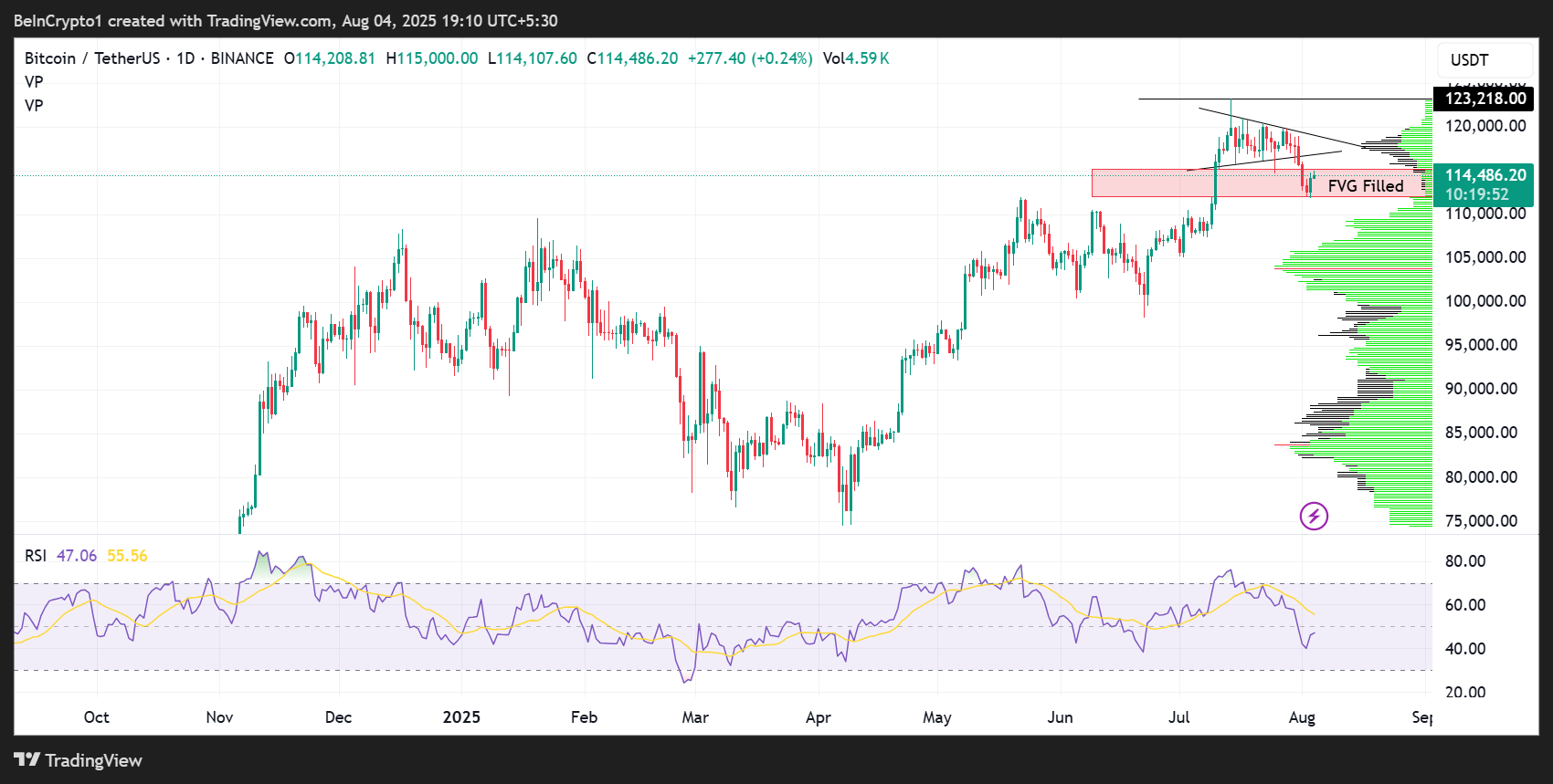 ในขณะเดียวกัน นักวิเคราะห์อีกคนหนึ่ง สังเกตเห็นรูปแบบที่เกิดขึ้นใหม่ซึ่งคล้ายกับรูปแบบที่นำไปสู่ การบีบสั้นในวันศุกร์จาก 112,000 USD ถึง 115,000 USD