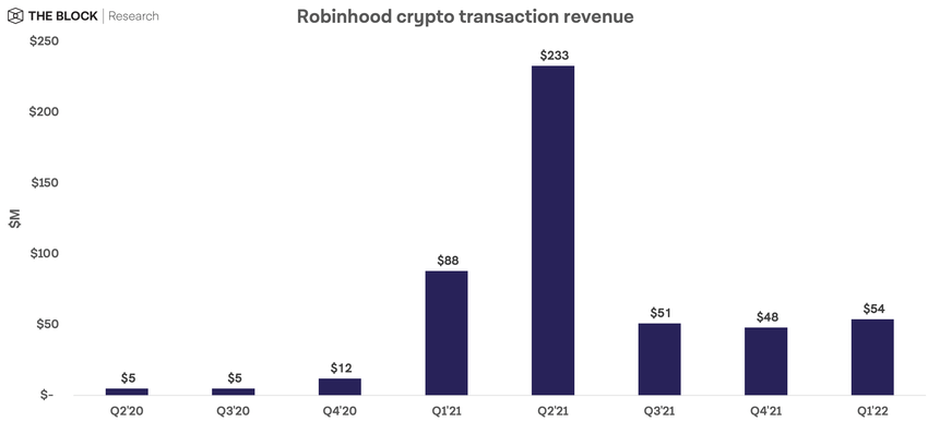 แม้ว่ารายรับของบริษัทจะอยู่ในช่วงขาลง แต่รายรับที่ได้จาก Crypto ของ Robinhood ยังคงเพิ่มขึ้นจากไตรมาสที่แล้ว โดยเพิ่มขึ้นเกือบ 13% จาก 48 ล้านดอลลาร์ในไตรมาสที่ 4 ปี 2021 เพิ่มเป็น 54 ล้านดอลลาร์ในไตรมาสที่ 1 ปี 2022