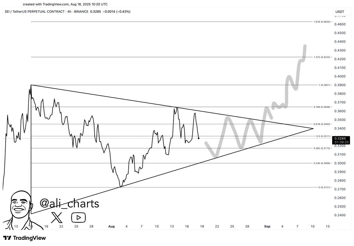 นักวิเคราะห์คนอื่นๆ เช่น Byzantine General เน้นย้ำว่า SEI ยังคงรักษาความแข็งแกร่งในช่วงที่ตลาดกว้างขึ้นมีการปรับฐาน ซึ่งช่วยเพิ่มความมั่นใจให้กับนักลงทุน อย่างไรก็ตาม นักวิเคราะห์ Daan Crypto ระบุว่า SEI จำเป็นต้องทะลุระดับ 0.39 USD เพื่อรักษาแนวโน้มขาขึ้นต่อไป ระดับนี้สอดคล้องกับจุดสูงสุดในท้องถิ่นจากกลางเดือนกรกฎาคม
